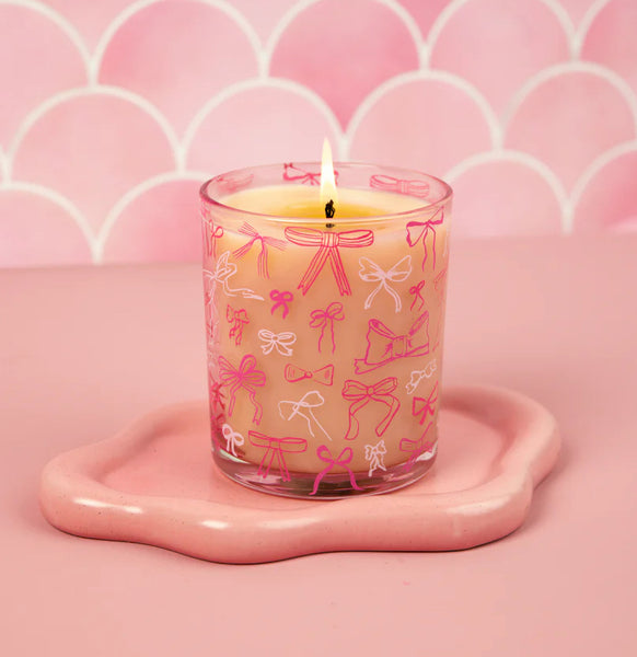 Add a touch of sweetness with the Sweet Grace Bow Candle! This adorable candle features pink and white bow decals on a clear glass jar, creating the perfect playful, pink-girl aesthetic. Filled with a soy-blend wax and our best-selling Sweet Grace fragrance, it offers up to 72 hours of burn time. Light it up and let the fun, flirty spirit of Sweet Grace fill your space!
